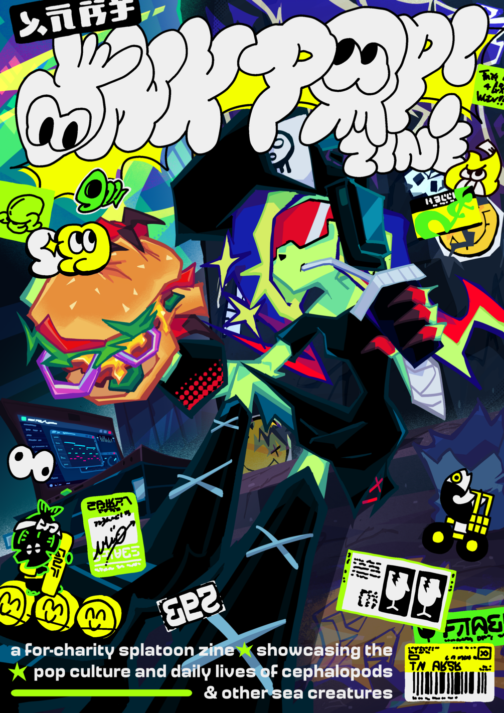 A for-charity Splatoon zine showcasing the pop culture and daily lives of cephalopods and other sea creatures! All proceeds will be donated to Food Baskets for Gaza by Pious Projects, so tips are greatly appreciated.